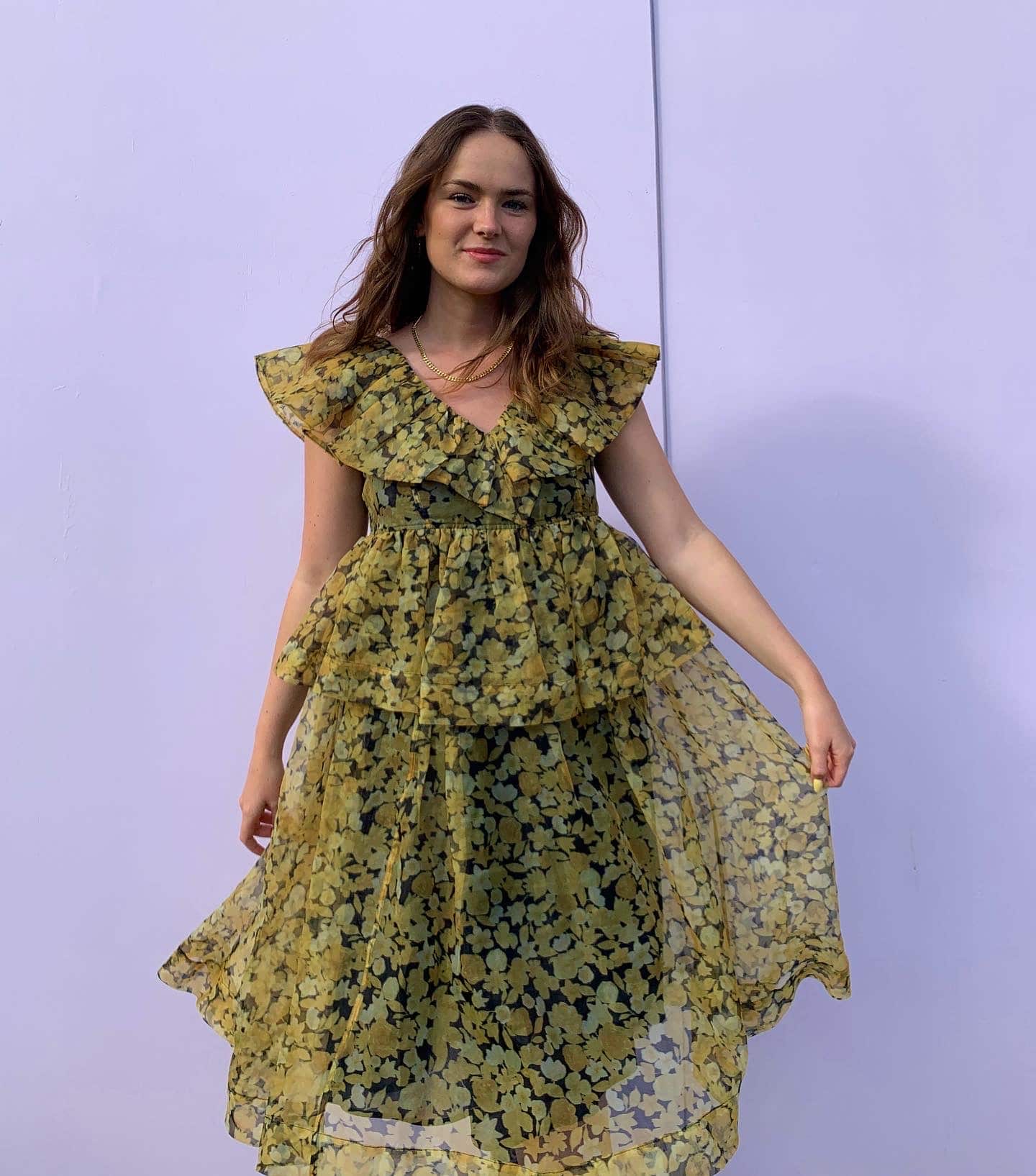 Smuk Organza kjole med fylde. Kan også bæres med en cool t-shirt under.