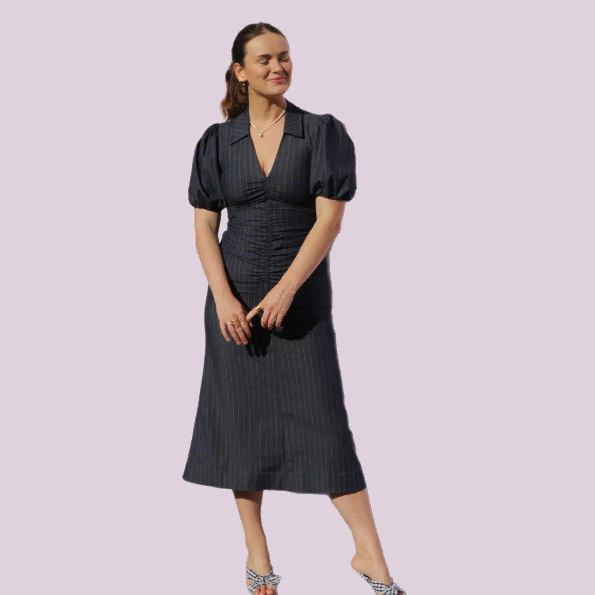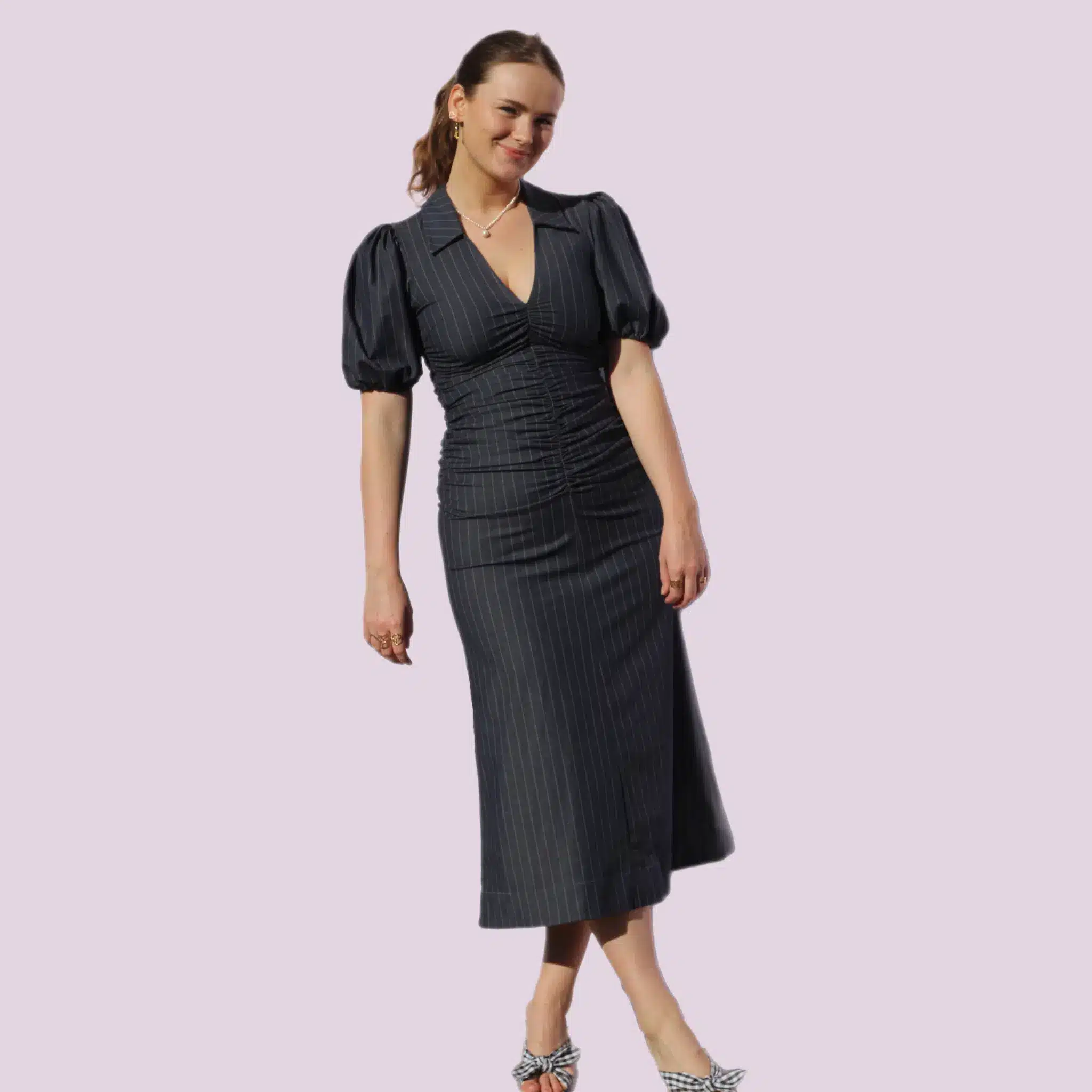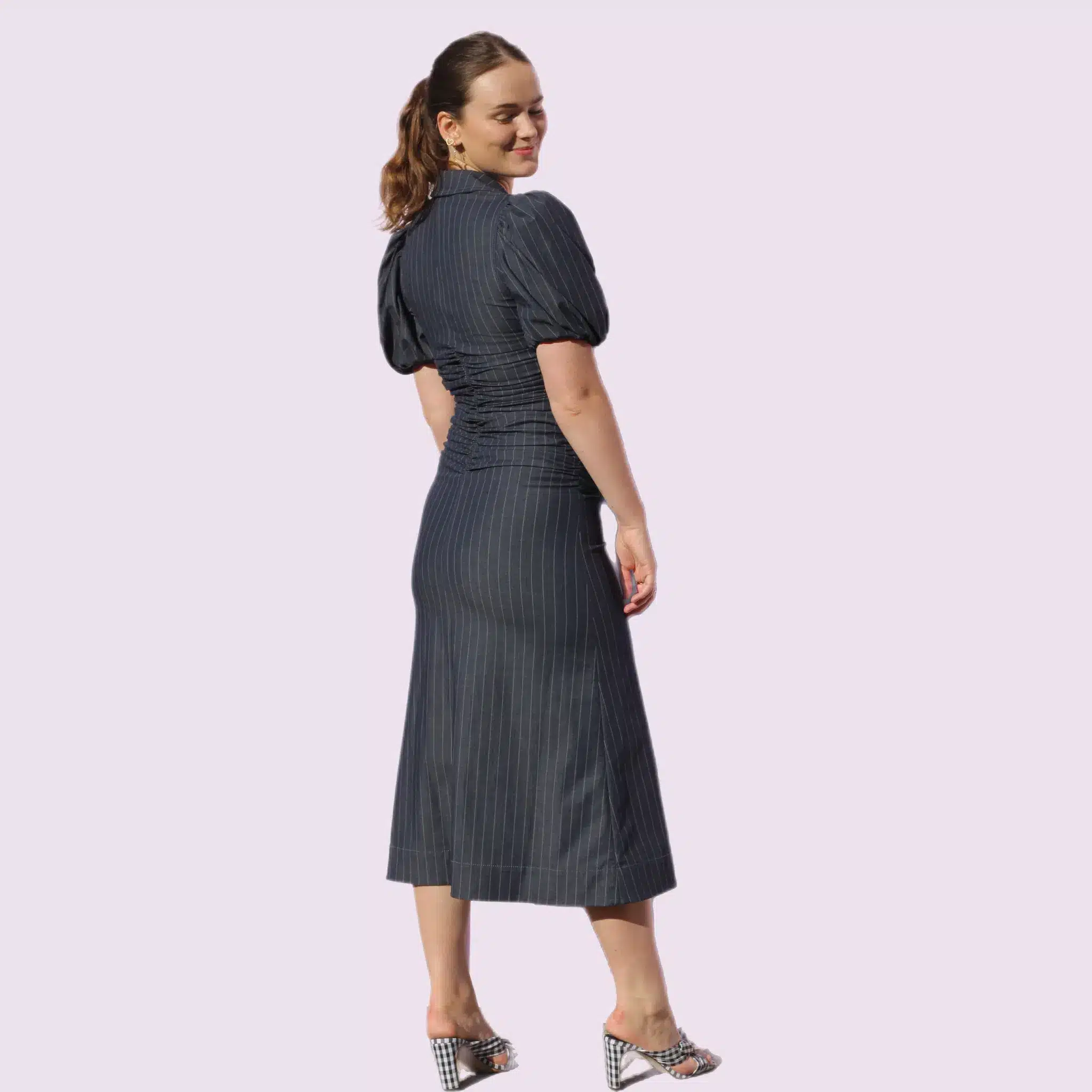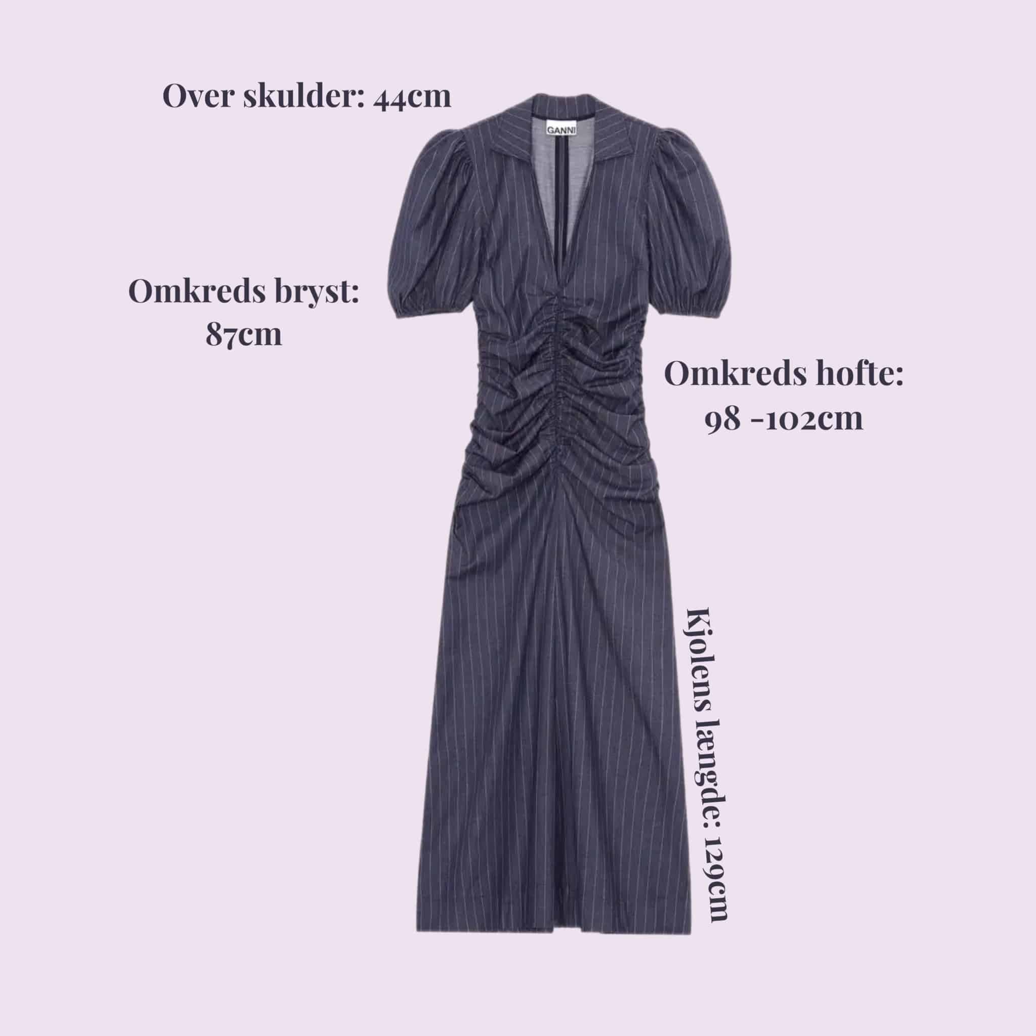 Tjek kalenderen herunder for at se, om Ganni Pinstriped Blue er ledig.